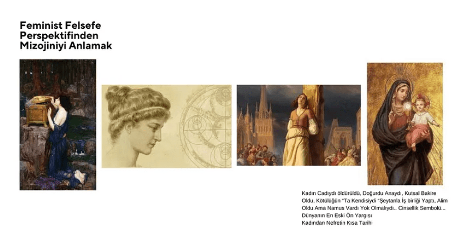 Tarih boyunca kadın imgesi ve kadına yönelik tutumlar sürekli değişiklik göstermiştir. Antik Yunan ve Roma’da, kadınlar bazen tehlike, bazen ise edilgen ve itaatkar varlıklar olarak görülmüşlerdir. Ancak bu dönemlerde bile, kadının toplumdaki konumu, erkek egemen zihniyet tarafından belirlenmiştir. Ortaçağ’da ise kadının konumu, hem ilahlaştırılmış hem de dışlanmıştır. Meryem’in “Tanrı’nın annesi” ilan edilmesi, kadının cinselliğinden arındırılarak kutsallaştırılmasına bir örnektir. Ancak aynı dönemde cadı avları ve kadınların şeytanla ilişkilendirilmesi, kadına yönelik derin kökleri olan önyargıları ve korkuları yansıtmaktadır.